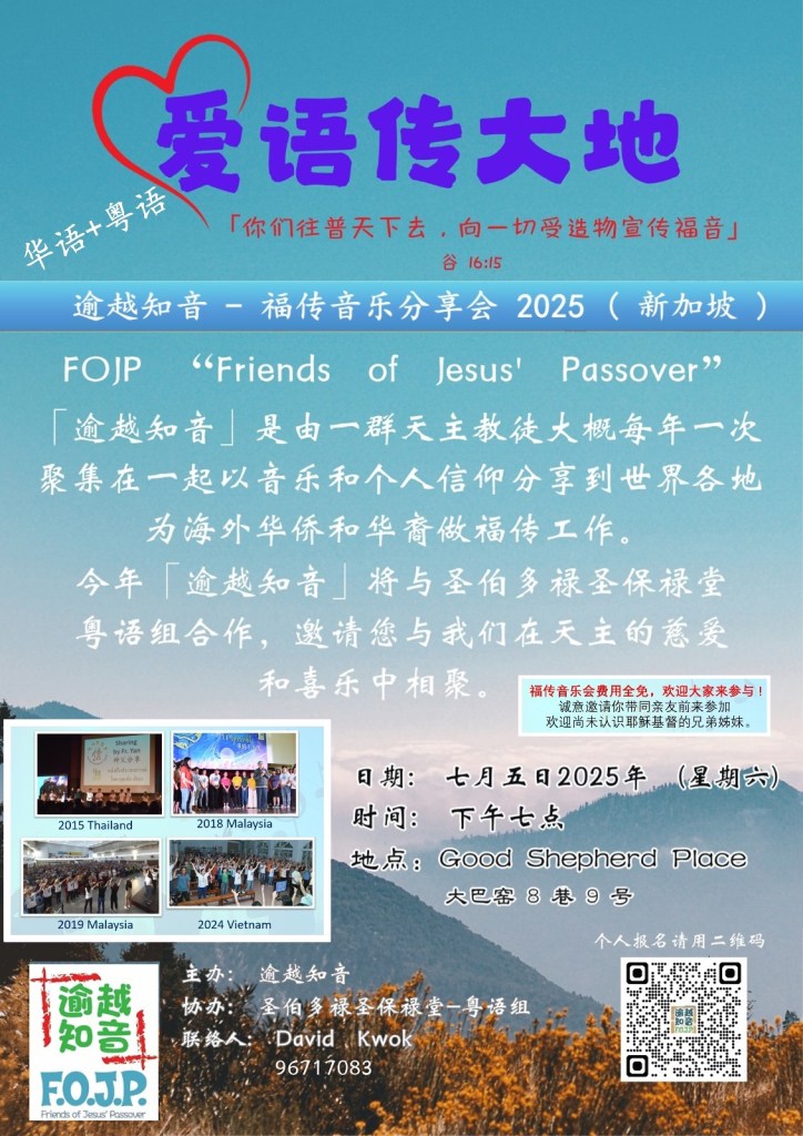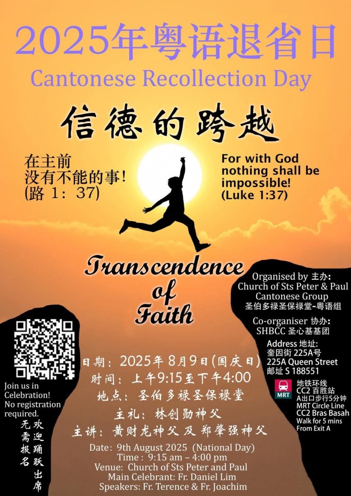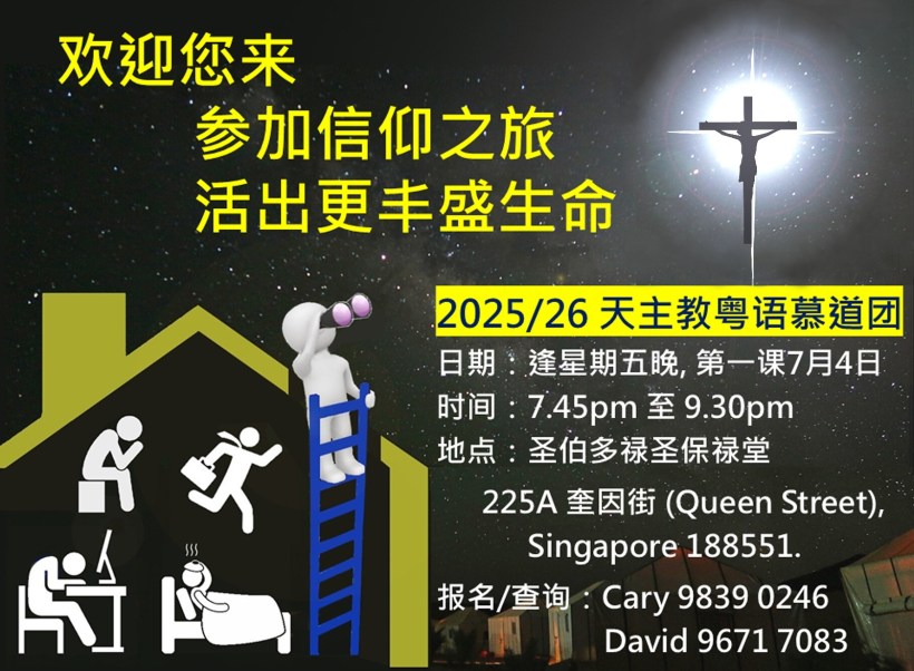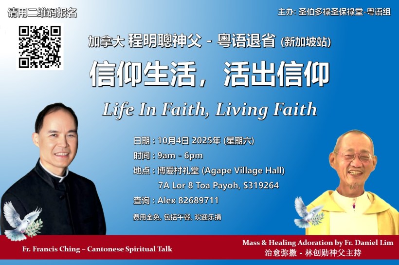 程明聰神父10月來新加坡,我們主办10月4日粵语退省,